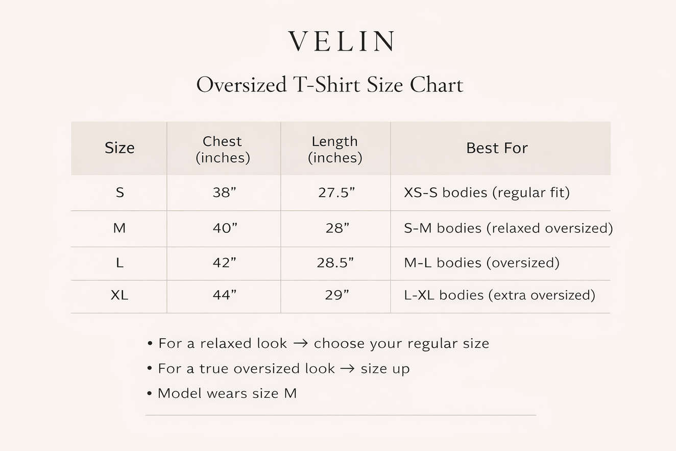 - Pick your usual size for a comfortable fit—go one size up for a more oversized look.